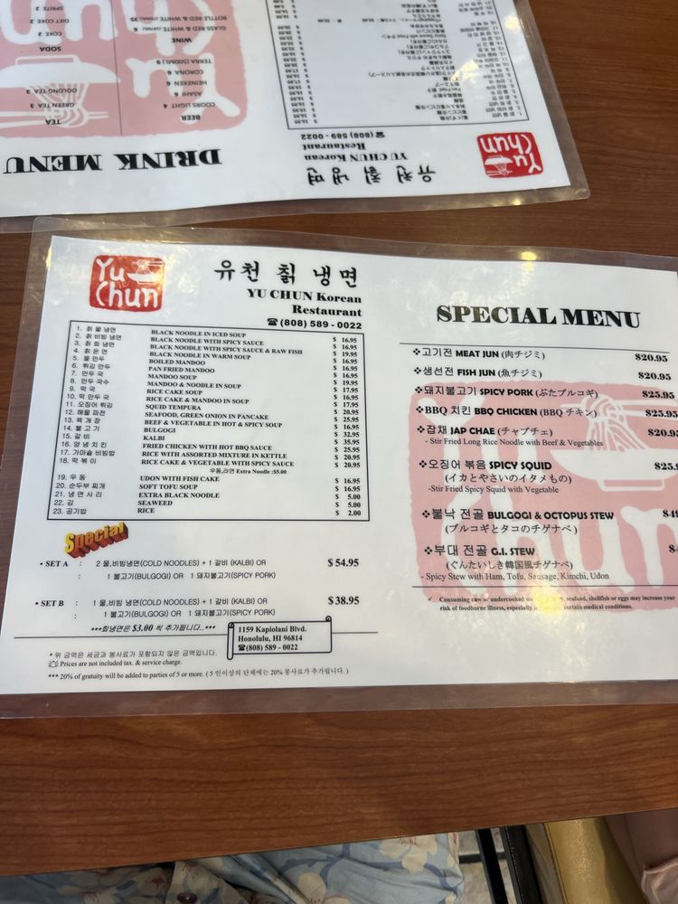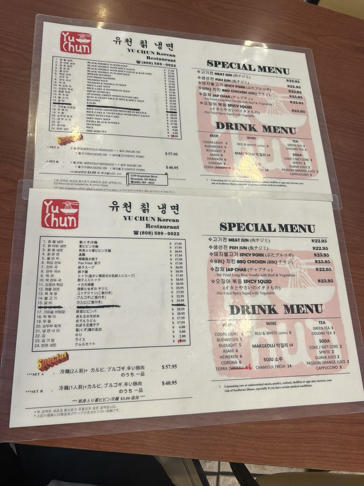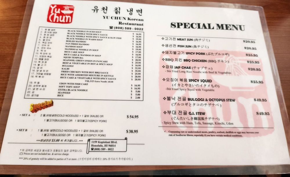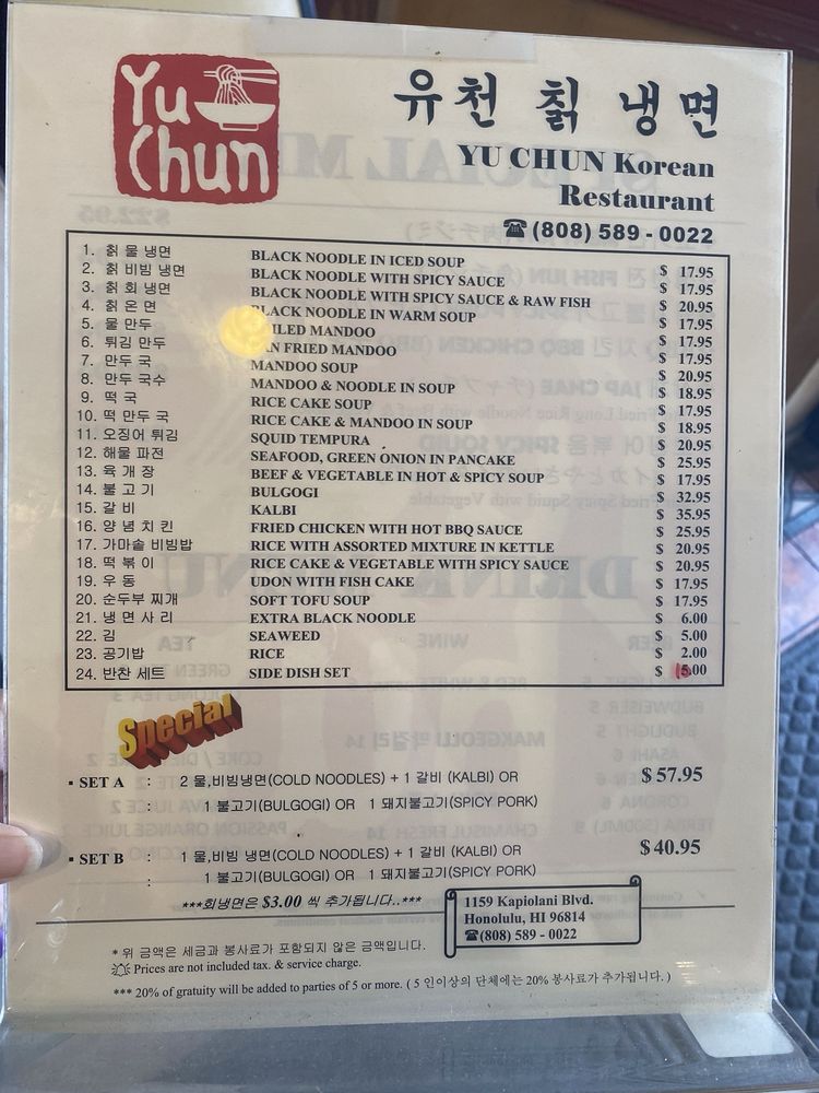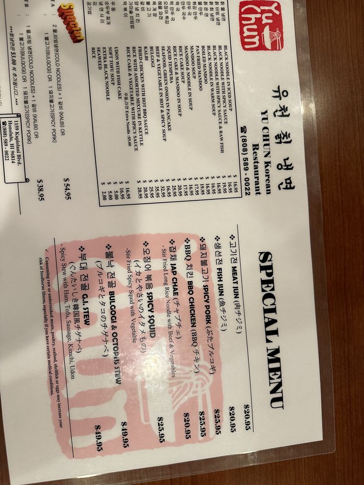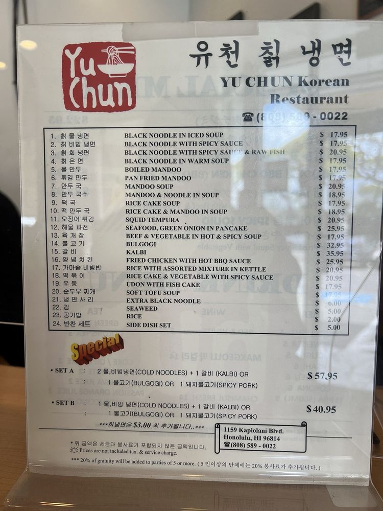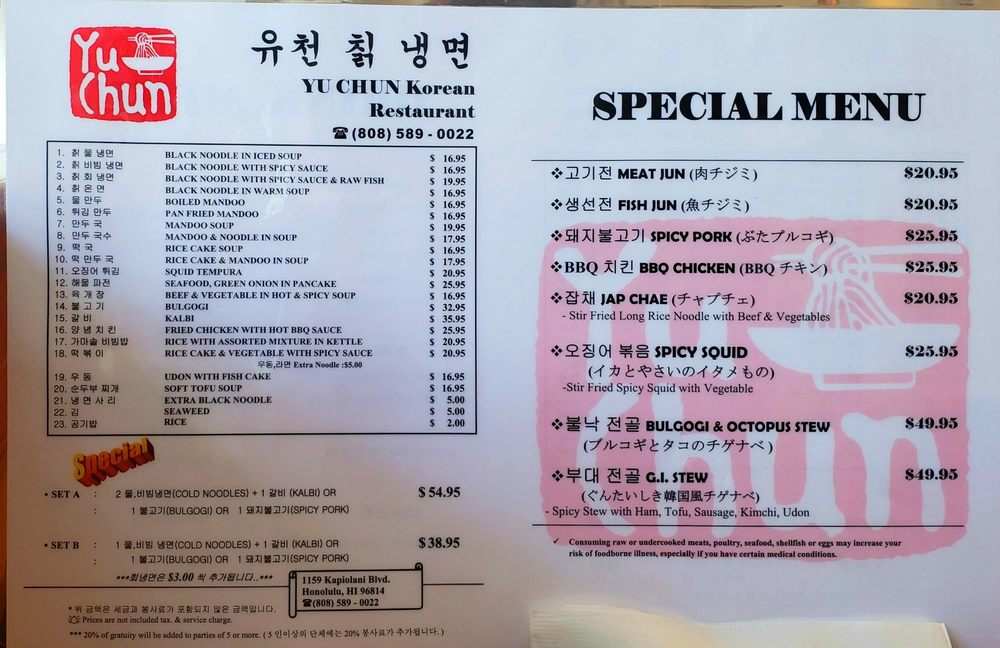 Yu Chun Korean Restaurant Menu (Update 2025)